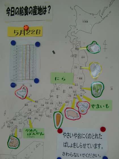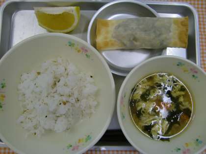 ゴマナッツごはん、ぼうぎょうざ、ちゅうかスープ、くだもの、ぎゅうにゅう