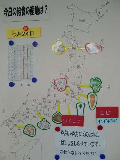 しせんどうふどん、さくらえびやき、たまごとわかめのスープ、ぎゅうにゅう