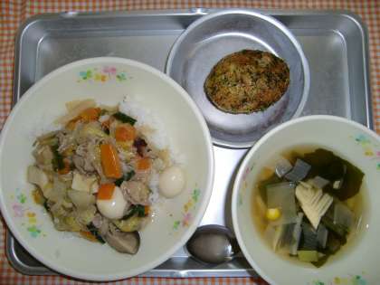 ちゅうかどん、わかめスープ、あげじゃが、ぎゅうにゅう