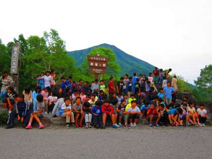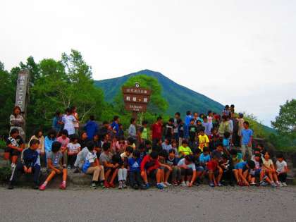 男体山が見えているので学年集合写真を撮りました。