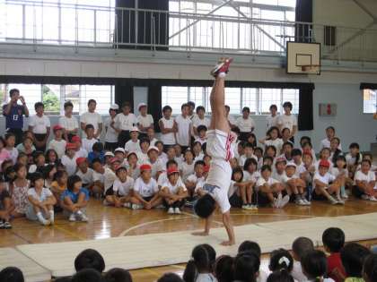 この事業は、アスリートの皆さんに学校に来て頂いて