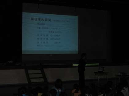 今日の朝会は、地震についてのお話でした。