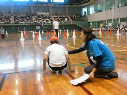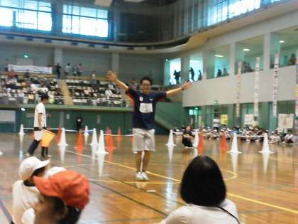 高学年の障害物走です。小山先生がお手本をしてくれました!
