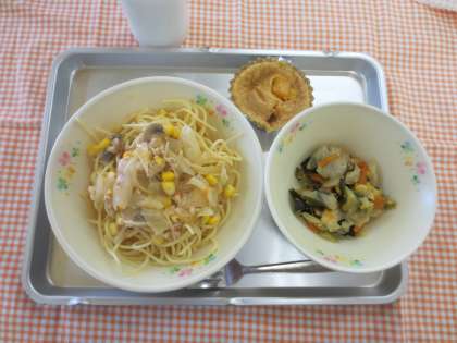 6月18日(火) 今日の給食 公開日 2013/07/18 更新日 2013/07/18 給食の献立 献立名 ・スープスパゲティー ・和風サラダ ・黄桃のクラフティー ・牛乳 今日は、トマトと生クリームと粉チーズを使ったスープをスパゲティーにかけて食べるメニューでした。クラフティーは、ケーキと違い生地が柔らかく卵を多く使っています。 いいね(0)