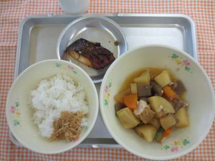 7月10日(水)今日の給食 公開日 2013/07/18 更新日 2013/07/18 給食の献立 献立名 ・ごはん ・鯖の殻みそ焼き ・大根の煮物 ・えのきの佃煮 ・牛乳 今日は、鯖の下味のにんにく、長ねぎ、練ごま、赤みそ、しょうゆ、酒、みりん、ごま油、豆板醤につけて、オーブンで焼きました。 いいね(0)