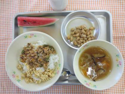 今日は、とうがんを使いました。とうがんは、夏野菜ですが、漢字で書くと冬のうりと書きます。これは、冬まで貯蔵できるからといわれています。水分が多く、ビタミンCなども多くふくまれることから、水分補給と共に、夏バテや疲労回復にも効果があります。