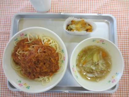 7月12日(金)今日の給食 公開日 2013/07/18 更新日 2013/07/18 給食の献立 献立名 ・スパゲティーミートソース ・温野菜のチーズ焼き ・野菜スープ ・牛乳 今日は、皆さんの大好きなスパゲティーミートソースでした。 いいね(0)