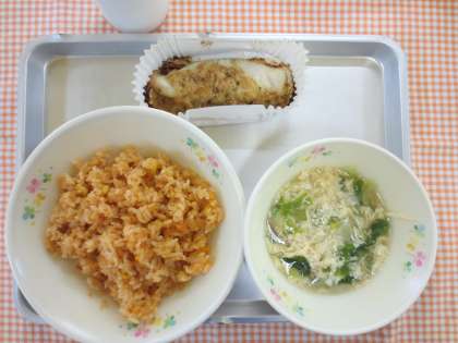 今日は、ケチャップ味の大豆ピラフでした。