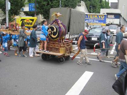 暑い中、みんながんばって担ぎ、引きました。