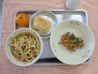8月30日(金)今日の給食 公開日 2013/09/02 更新日 2013/09/02 給食の献立 献立名 ・カレーうどん ・彩り和え ・豆つこケーキ ・冷凍みかん ・牛乳 今日から、2学期が始まりました。 まだまだ暑い日が続いていますが、給食室一同頑張っています。 いいね(0)