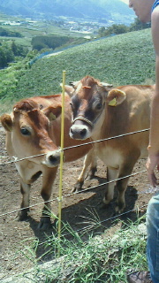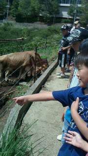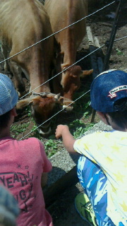 草を取って、ぶどう畑で飼っている牛にエサとして上げました。