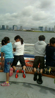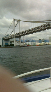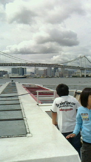 水上バスのデッキに出ることが出来ました。わぁー!歓声が上がりました。レインボーブリッジの全貌がよく見えました。