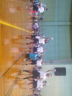 特別支援学級連合運動会。みどり学級は大きな声と大きな動きで、白組応援団の大役を果たしました。