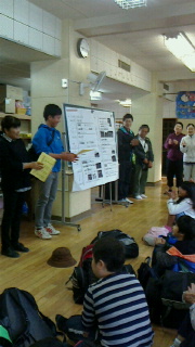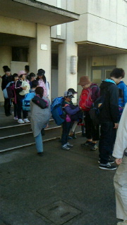 素晴らしい天気です。皆に味方してくれていますね。楽しい楽しい校外学習「夕焼け小焼け」に出発します。みんな、ニコニコ顔です。