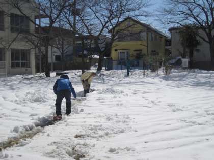 五小では、昨日16日(日)に地域の方々が来校して、校庭の雪かきを