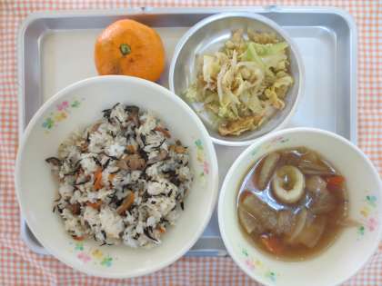 今日も、牛乳の配送ができなかったので、牛乳はありませんでした。代わりに、献立にはありませんでしたが、みかんをつけました。