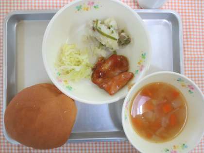 3月19日(水)今日の給食 公開日 2014/03/21 更新日 2014/03/19 給食の献立 献立名 ・丸パン ・照り焼きチキン ・スチームキャベツ ・ジャーマンポテト ・ミネストローネ ・牛乳 今日は、ジャーマンポテトでした。ジャーマンポテトのジャーマンは、ドイツ、ポテトは、じゃがいもという意味の和製英語です。じゅがいもを使い、カリカリに焼いたベーコンを炒め合わせたドイツ料理です。ドイツでは、主食としても食べられています。 いいね(0)