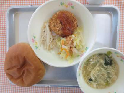 今日は、おからコロッケでした。おからは、豆腐の搾りかすからできていますが、栄養的にはすぐれています。おからの「から」は、空っぽを連想するので、味をつけて「卯の花」などとして食べられるのが有名です。今日は、コロッケの中におからを入れて作りました。
