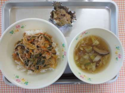 5月1日(木)今日の給食 公開日 2014/05/10 更新日 2014/05/08 給食の献立 献立名 ・豚キムチ丼 ・たらのシュウマイ ・春雨のスープ ・牛乳 今日は、豚キムチ丼でした。キムチは、保存食で青唐辛子を使った「白キムチ」でしたが、16世紀に日本から唐辛子がつたわり、今のような赤いキムチになりました。唐辛子の辛みと、野菜の甘みと、発酵食品のうま味があり、今ではよく食べられる食品になっています。今日は、丼にしました。 いいね(0)