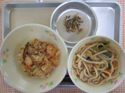 今日は、一足早くこどもの日メニューにしました。『端午の節句』と言われ、男の子の成長を祝う行事です。「よろいかぶと」や「こいのぼり」を飾ったり、柏餅を食べたり、お風呂に菖蒲を入れる菖蒲湯に入る習わしもあります。