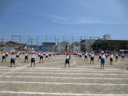 3年生は「Ring・リング・2014」をやりました。フラフープが綺麗に舞う姿は素晴しかったです。また綺麗に揃って入退場した3年生の姿に感動しました。
