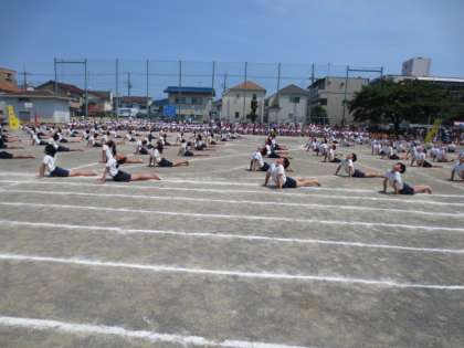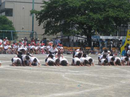 5,6年生による「組体操」は最高学年として、素晴しい表現をしました。様々な技が次から次へと繰り広げられる姿に保護者や地域の方たちからの拍手が鳴りやまなかったです。