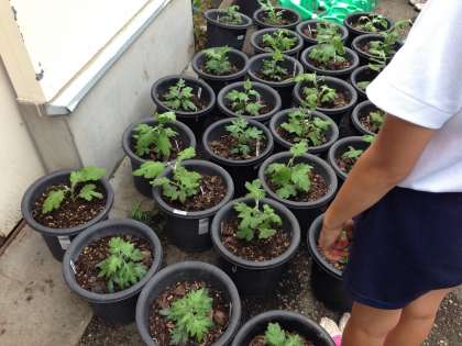 今日から約半年間かけて、大輪の花を咲かせることをめあてに頑張っていきます。作品展のころには、全員の菊が見られるよう、実行委員さんを中心に愛情込めて育てていきたいです。