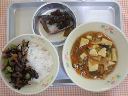 6月9日(月)今日の献立 公開日 2014/06/13 更新日 2014/06/13 給食の献立 献立名 ・ごはん ・鯖の生姜煮 ・とうふのカレー煮 ・ひじきの煮物 ・牛乳 今日は、ひじきの煮物を作りました。ひじきなどの海藻には、次のような働きがありましす。 1 皮膚やのどを丈夫にする。2 肌をつやつやにしたり、髪の毛を黒く丈夫にする。3 骨や歯を丈夫にする。さらに食物繊維も豊富で、お腹の中をきれいに掃除してくれる働きもあります。進んで食べましょう。 いいね(0)