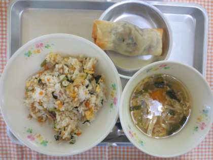 6月20日(金)今日の給食 公開日 2014/06/25 更新日 2014/06/25 給食の献立 献立名 ・チャーハン ・棒餃子 ・にらたまスープ ・牛乳 今日は、棒餃子でした。餃子とは、小麦粉に水を加えて薄く伸ばして作った皮で具を包み茹でたり、焼いたり、蒸したり。揚げたりする料理です。給食では、長芋と春雨、野菜をたっぷり入れて作りました。 いいね(0)