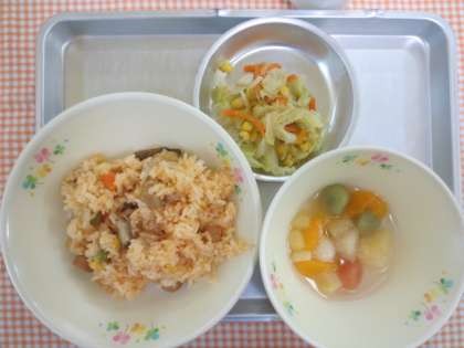 6月23日(月)今日の給食 公開日 2014/06/24 更新日 2014/06/23 給食の献立 献立名 ・ウィンナーライス ・キャベツのソースがけ ・三色白玉フルーツ ・牛乳 今日は、三色白玉フルーツを作りました。赤の白玉はトマトジュースで色を付けました。緑の白玉は、抹茶で色を付けました。白い白玉は、豆腐と白玉粉を混ぜて作りました。給食室で小さくたくさん丸めて作りました。 いいね(0)