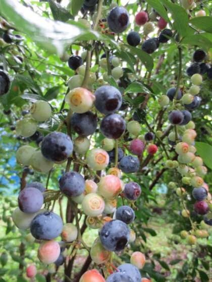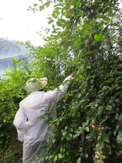また、ブルーベリーマフィンに使ったブルーベリーは、八王子市上恩方の中村農園で栽培されているものを、調理員さんと一緒に摘みに行きました。大きな粒の新鮮なブルーベリーで作ったブルーベリーマフィンも、好評でした。