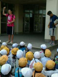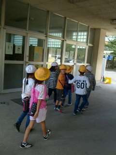 生活科の学習でなかよし班をつかって、陵南公園に行きます。2年生が1年生の世話をしながら、自分たちだけで行きます。