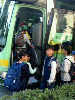 バスに乗り込みます。ちょっと緊張気味かな?