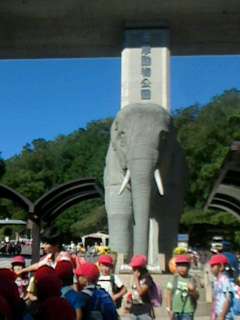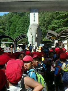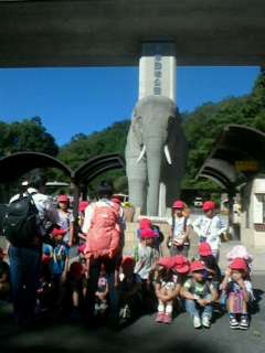 多摩動物公園に到着。ゾウさんのまえで記念撮影しました。