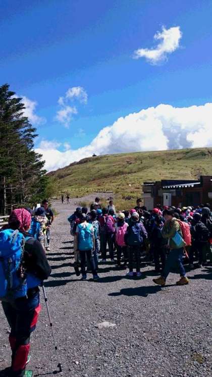車山方に到着。山頂めざして、すぐに出発です。具合が悪くなる子も出ず、全員元気です。
