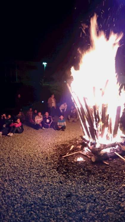 キャンプファイヤーは、満天の星空のもと実施しました。大盛り上がりで、歌声も大きく、ゲームやダンスもノリノリでした。