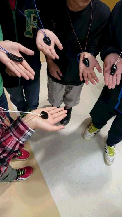 黒曜石ミュージアムでは、黒曜石でペンダント・骨角器・勾玉づくり体験をしました。