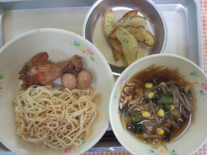 10月21日(水)今日の給食 公開日 2015/11/18 更新日 2015/11/18 給食の献立 献立名 ・八王子ラーメン ・ウィングとたまごのしょうゆ煮 ・皮付きベイクドポテト ・牛乳 今日は、八王子ラーメンを作りました。八王子ラーメンの特徴は、しょうゆ味であることと、スープの表面を油がおおっていることと、きざみ玉ねぎが入っていることです。八王子のだお表的なご当地グルメです。 いいね(0)