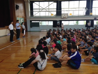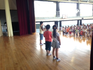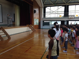 2年生が代表として、1学期の振り返りを全校児童の前で発表しました!練習の成果を発揮し、大きな声で発表できていました。