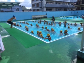 この夏休みの間に25メートルが泳げるようになった子や水に顔をつけられるようになった子がいて、たくさん成長した五小っ子です!