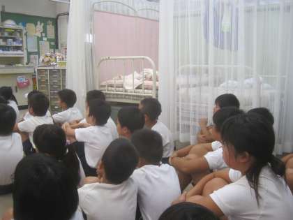 計測の前に養護教諭から「鼻」についての話をしてもらいました。