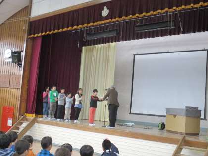 今日は、全校朝会で漢字コンクールと長なわ大会の表彰がありました。