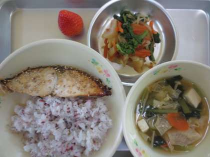 今日が最後の給食ということで、6年生の卒業をお祝いする春らしい献立にしました。