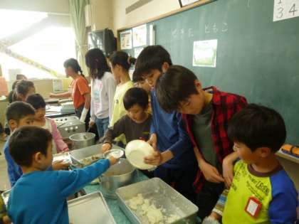 それも、陰でサポートしてくれている6年生のおかげです。休み時間や給食中もやさしく見守りつつ、手助けしてくれています。