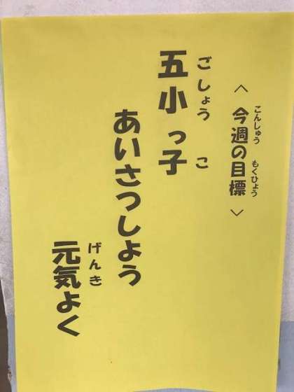 今週の目標! 公開日 2017/04/27 更新日 2017/04/27 五小の生活 意識している子が多く、気持ちがいい! 大人も負けませんよ! 6年「あいさつで 元気にしよう 全員を」阿部優介 いいね(0)