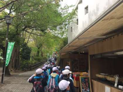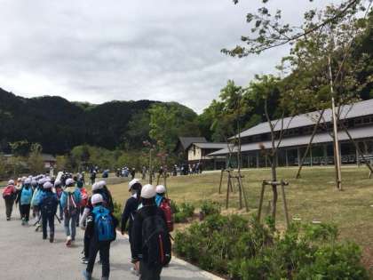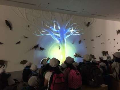 TAKAO599では、初めにプロジェクションマッピングで高尾山の四季に触れました。映像美に感動する4年生。