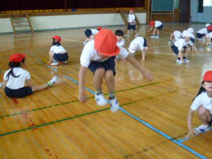 また、動物になりきる表現遊びでは、自分でイメージしたことを自由に表現しています。「次は、○○になりたいなぁ」と、いろんな声が聞こえてきます。来週の授業が楽しみです。