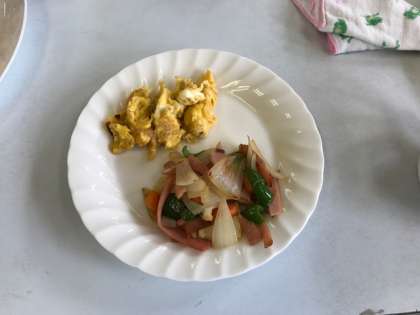 野菜炒めと卵料理。