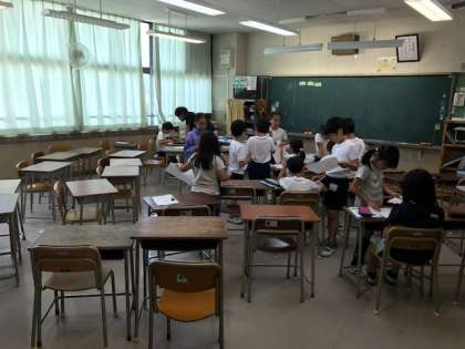 自分たちで丸付けをし合う姿。
