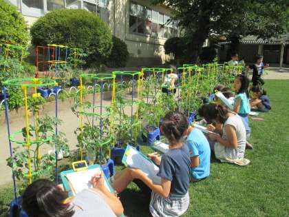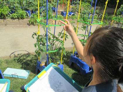 ミニトマトの観察をしています。